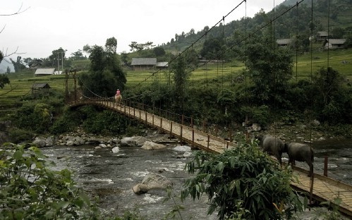 9.30 We will trek on a hilly trail around 3 km throught Bamboo forest to Giang Ta Chai village where you can see the Red dao minority people. You can make a stop at a waterfall for taking the photos. Have soft break at rattan bridge –the oldest rattan bridge in Sapa. Visit some house and continue to go to Su Pan village . Have lunch at the village