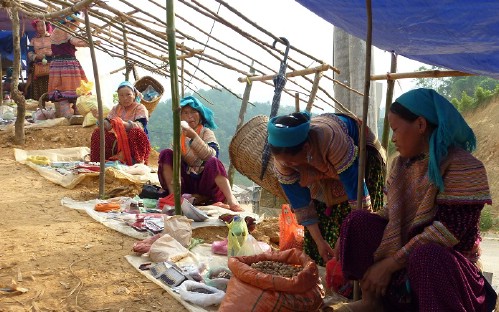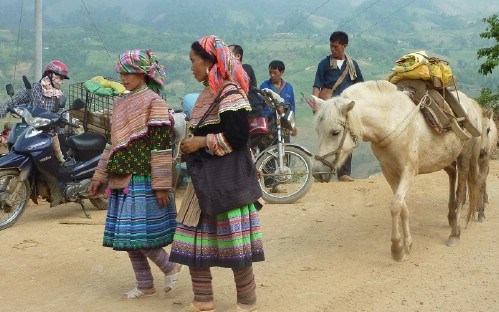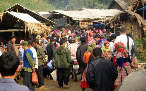 This is a medium sized colorful mountainous market where every Tuesday all ethnic minority groups from the surrounding villages, especially, mainly is Flower H'Mong gathers to exchange their homemade products: fruits, vegetable, pork, chickens, cloths,...