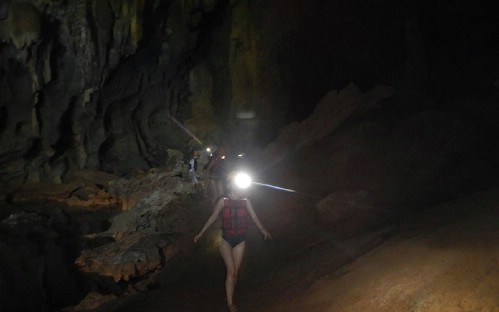 • 13:30: Visit Dark cave (located in Phong Nha - Ke Bang National Park, 20km about Phong Nha cave, 65 km about Dong Hoi and 1h10 minutes driving). Dark cave was the true experience, kayaking over the river to get there, walking through the dark with only the head touch on your mining helmet, having a mud fight in the mud baths deep in the cave and then washing clean with a swim in the lake inside the cave.