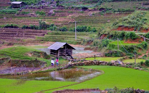 We continue to trek more 4 Km through terraced rice fields to Ta Van village of the Dzay minority people. This is a good chance to learn about the local architecture, daily life styles and customs.