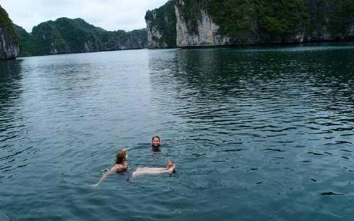 • 16h00 – 17h00: Cruising to Titov island. Go swimming and relaxing at the beach of Titov or climb up to the top of the island for a panorama view of Halong Bay.