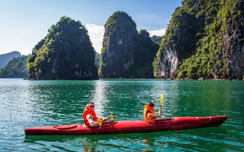 15:00:  You at  Tung Gau Area. The airy and fresh air, cool breezes, blue sea and sky, and natural seascape will captivate any visitors setting foot here. Especially, Tung Gau of Lan Ha Bay is extremely suitable for enjoying kayaking and swiming and then Visiting Halong Pearl Farm Village
