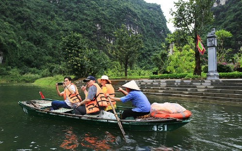 Continue to take a boat trip to visit Trang An Complex - inscribed as a UNESCO World Heritage Site.. You will head to Trang An, embark on a traditional sampan through an out-standing natural beauty of majestic limestone massif and the numerous caves: Hang Toi ( Dack ) cave - 320 meter long, Sang (light) cave - 90 meter long, and Hang Nau Ruou (Cooking wine) cave - 250 meter long…