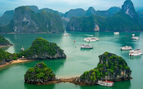 • Explore the stunning view of Halong Bay, a UNESCO Heritage Site