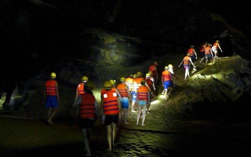 13:30: Visit Dark cave (located in Phong Nha - Ke Bang National Park, 20km about Phong Nha cave, 65 km about Dong Hoi and 1h10 minutes driving). Dark cave was the true experience, kayaking over the river to get there, walking through the dark with only the head touch on your mining helmet, having a mud fight in the mud baths deep in the cave and then washing clean with a swim in the lake inside the cave.
