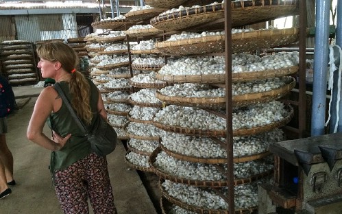 We continue riding along the countryside road with the amazing scenery where you can visit coffee plantations, weasel coffee farm, cricket farm, a traditional silk center, rice wine cooking, Elephant waterfall and Linh An pagoda with “a big Happy Buddha”.