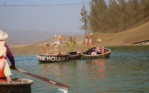 - Board on boat and cruise to the mouth of the river where it meets the Cua Dai Sea