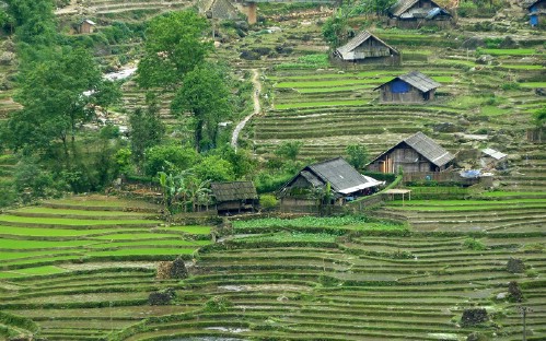 After lunch, we trek more 4 Km through terraced rice fields to Ta Van village of the Dzay minority people. This is a good chance to learn about the local architecture, daily life styles and customs. Then return to Sapa town by minibus. Drop you off at hotel in Sapa center. Tour ends.