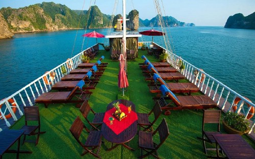 Gray Line Halong features a unique design of Vietnamese traditional wooden junk and a luxury set of services by the professional teams.