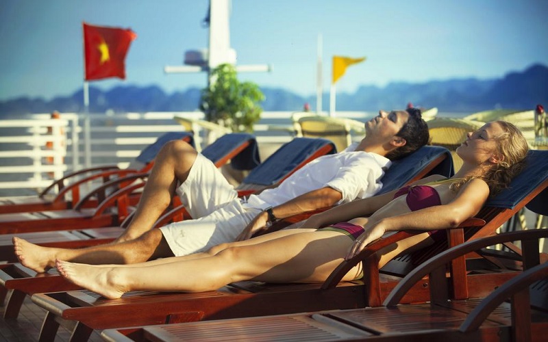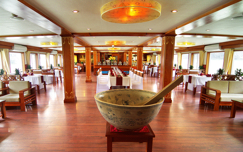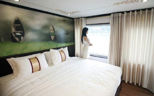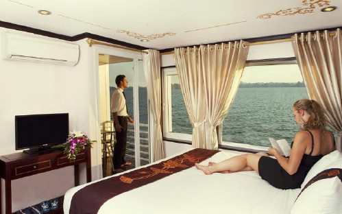 It includes 26 cabins with all the private balconies. The ship is highly rated in government marine safety standards and promises to be the best choice for your stunning tour to Bai Tu Long Bay. Tourists can try the first-rate services and facilities such as sundeck bar, spa, library, Jacuzzi, lounge and bar and more.