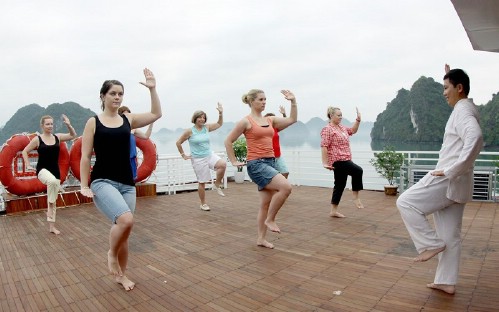 <li>6.30: Welcome a new day with an amazing dawn on Bai Tu Long Bay. Refresh your body and soul with a Tai-chi session on the sundeck.</li>