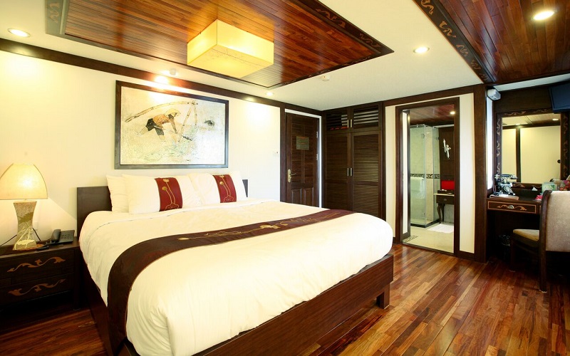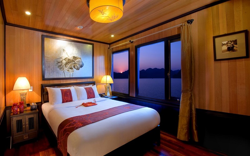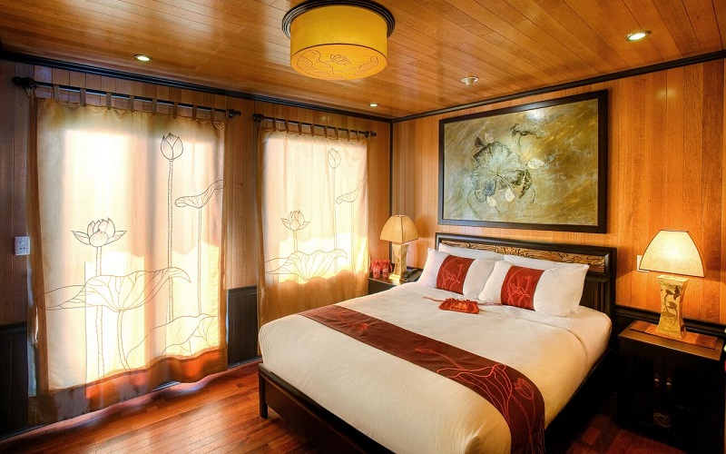 Cabins feature the beautiful and durable “Huong timber”, which is very good for the health. Each boat has luxury cabins on the second floor and senior cabins on the first floor,all with well-appointed amenities.
