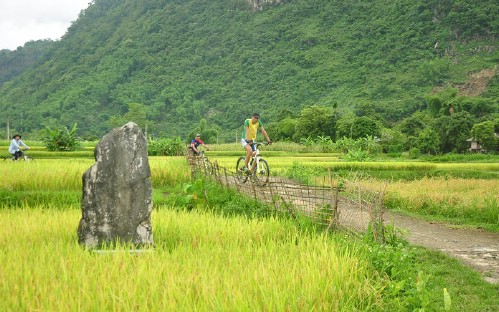 +, Biking amongs green rice paddy in Mai Chau.