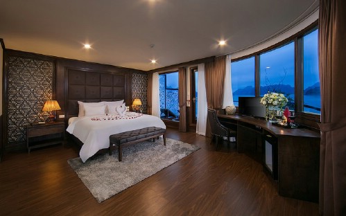 • 20:30-0:00: After finishing dinner, you can enjoy the landscape of the bay at night up on the top deck, relax with peaceful music, enjoy drinks from the bar or try your luck at squid fishing, watch a movie or just chill in your room.