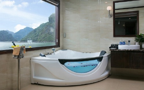 • 12:00: Embark Mon Chéri Cruises. You will be served a welcome drink and provided with a cold towel. This will be followed by a cruise briefing where you will also be given safety instructions before checking in to your cabin. We will set sail and you will have lunch in Mon Cheri's luxury restaurant while enjoying the beauty of the canals on our way to Halong Bay.