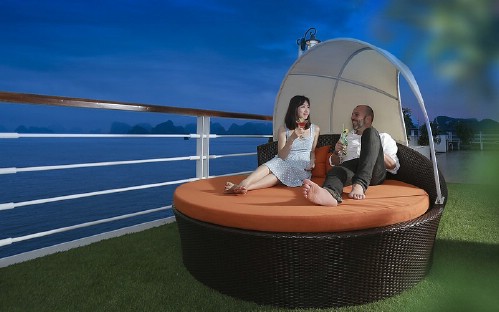 It is a perfect blend of the sophistication between the classic European form and the rustic essence of Vietnamese styling. Mon Chéri itself creates the difference with the tiny distinguished feature from its elegant design, deluxe restaurant; the menu is up with careful consideration, 18 spacious cabins with private balcony bound to the spectacular view of Lan Ha Bay and emerald ocean. Deeply immerse in the charm of the traditional music tone while enjoying dinner at the restaurant or find a place on the sundeck with a cocktail to taste the sweetness of peace in the evening is seem to be the best way to reward yourself the experience exquisite, the journey flawless.