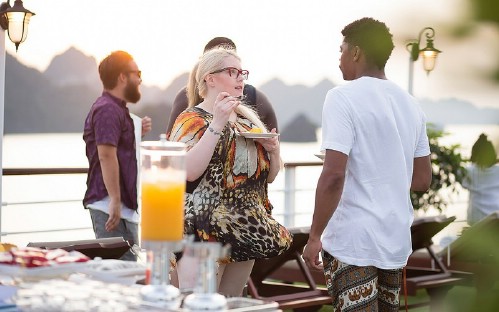 • Admire the magnificent sunset over the Gulf of Tonkin and enjoy a complimentary sunset party