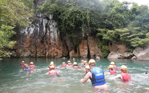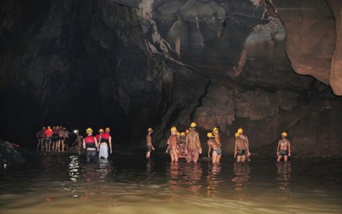 • 13:30: Visit Dark cave (located in Phong Nha - Ke Bang National Park, 20km about Phong Nha cave, 65 km about Dong Hoi and 1h10 minutes driving). Dark cave was the true experience, kayaking over the river to get there, walking through the dark with only the head touch on your mining helmet, having a mud fight in the mud baths deep in the cave and then washing clean with a swim in the lake inside the cave.
