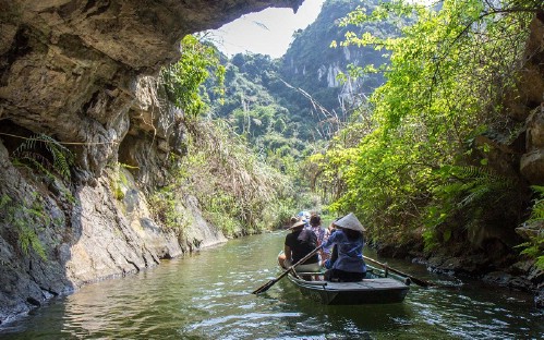 13:30 -16:00: Take a boat trip to visit Trang An Complex - inscribed as a UNESCO World Heritage Site.. You will head to Trang An, embark on a traditional sampan through an out-standing natural beauty of majestic limestone massif and the numerous caves: Hang Toi ( Dack ) cave - 320 meter long, Sang (light) cave - 90 meter long, and Hang Nau Ruou (Cooking wine) cave - 250 meter long…